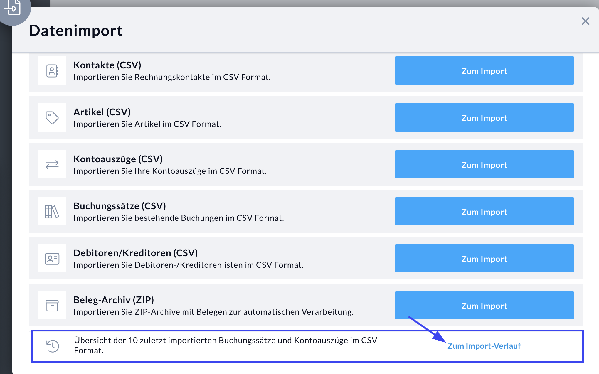 1. Öffnen Sie den Import-Verlauf.
