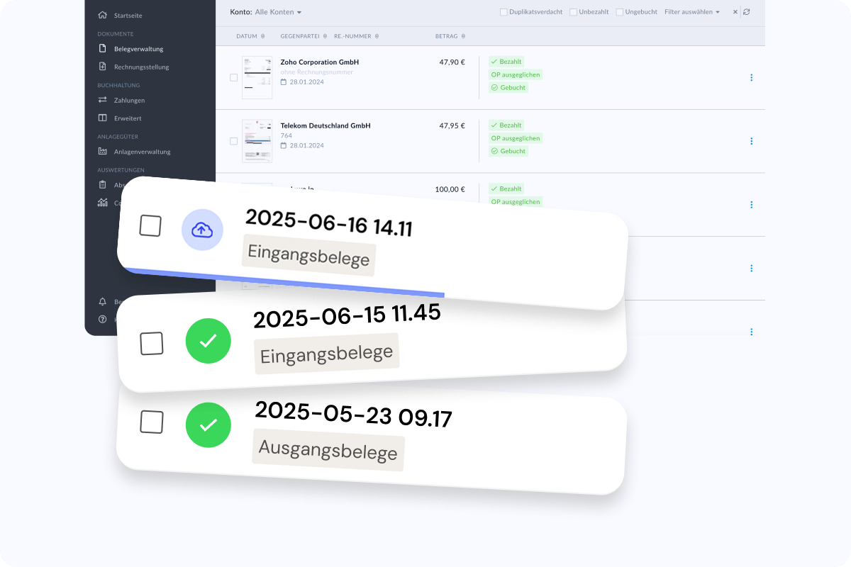Dort können Sie Belege jederzeit einfach finden, prüfen und mit wenigen Klicks bearbeiten – unabhängig davon, ob es sich um ein- oder mehrseitige Unterlagen handelt. So behalten Sie jederzeit den vollständigen Überblick über Ihre digitale Buchhaltung.